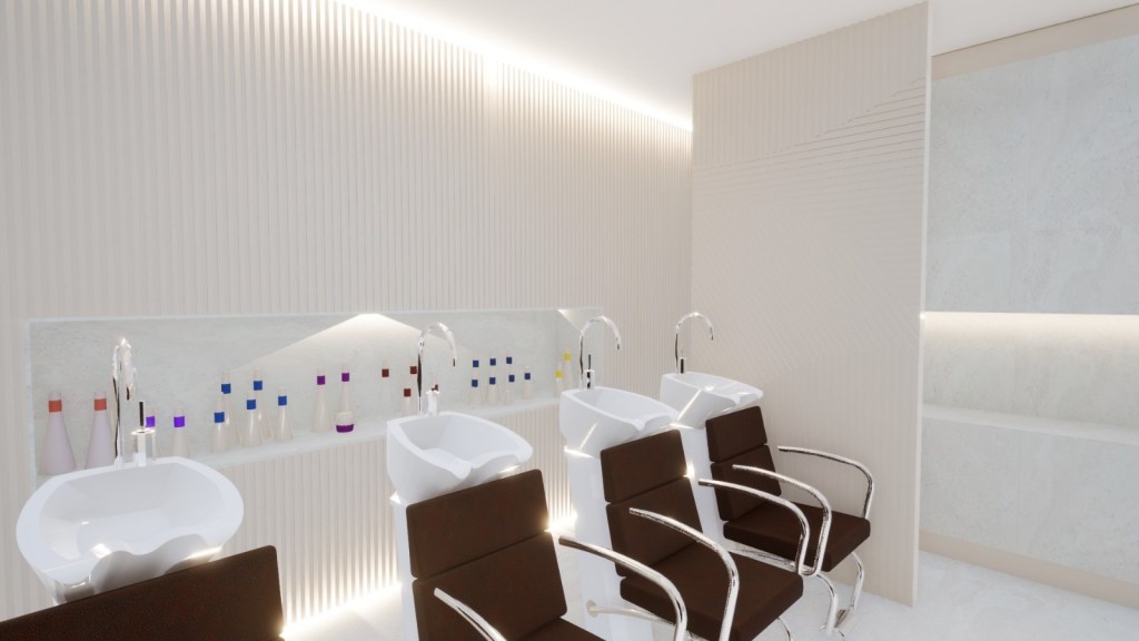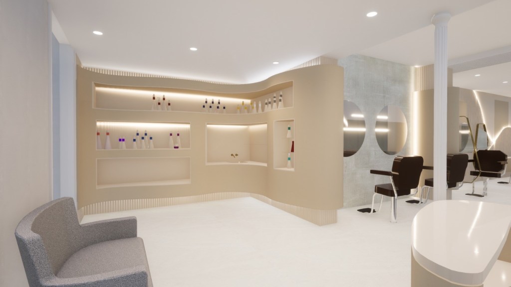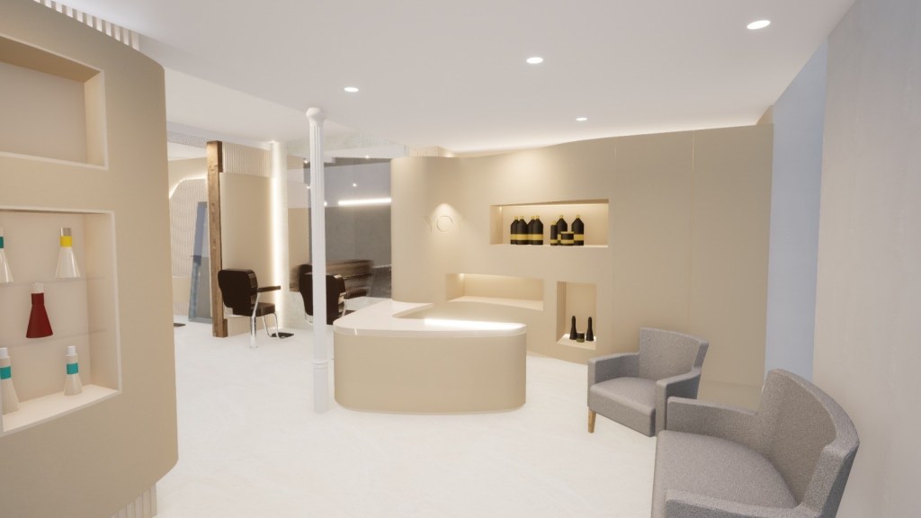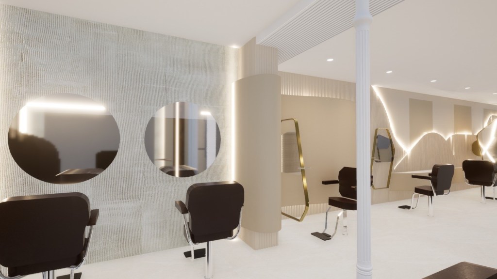 Renders 3D de la reforma de la nueva peluquería de lujo YÖY en el Gran Canarias.