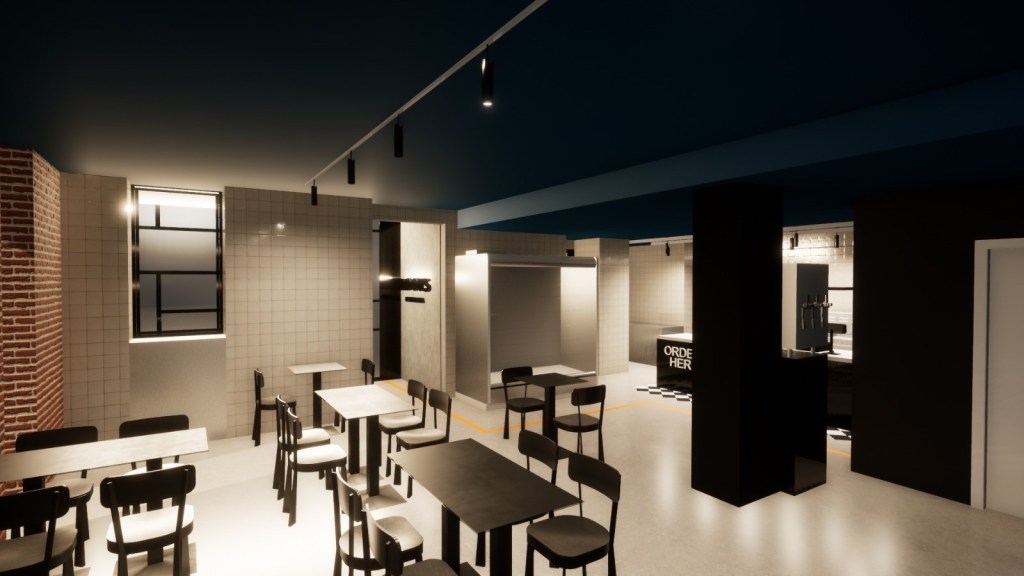 Renders 3D de la reforma del nuevo restaurante de Roots Lamarca en el centro de Madrid.